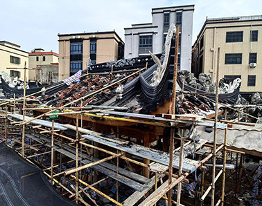 关键部件自己生产,比如砖雕、方砖。水泥花窗、木雕产品等